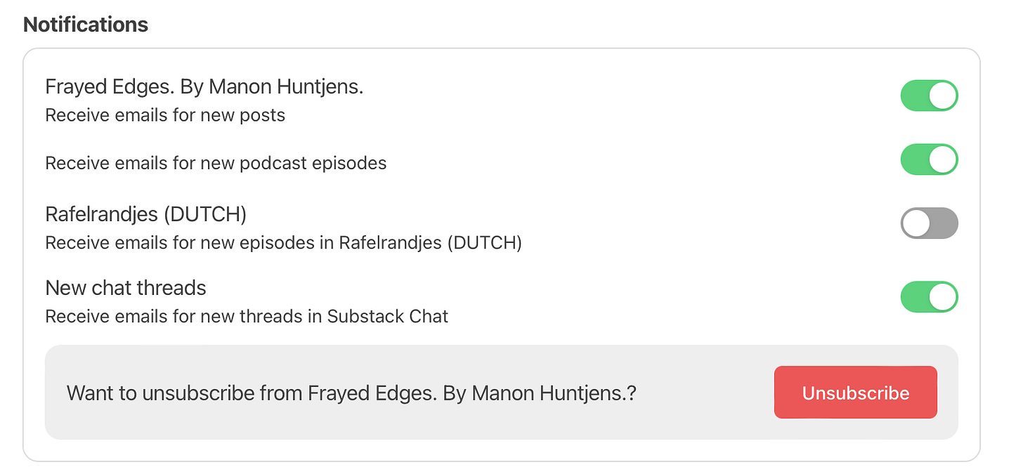 1. Go to www.substack.com/settings and choose Frayed Edges: